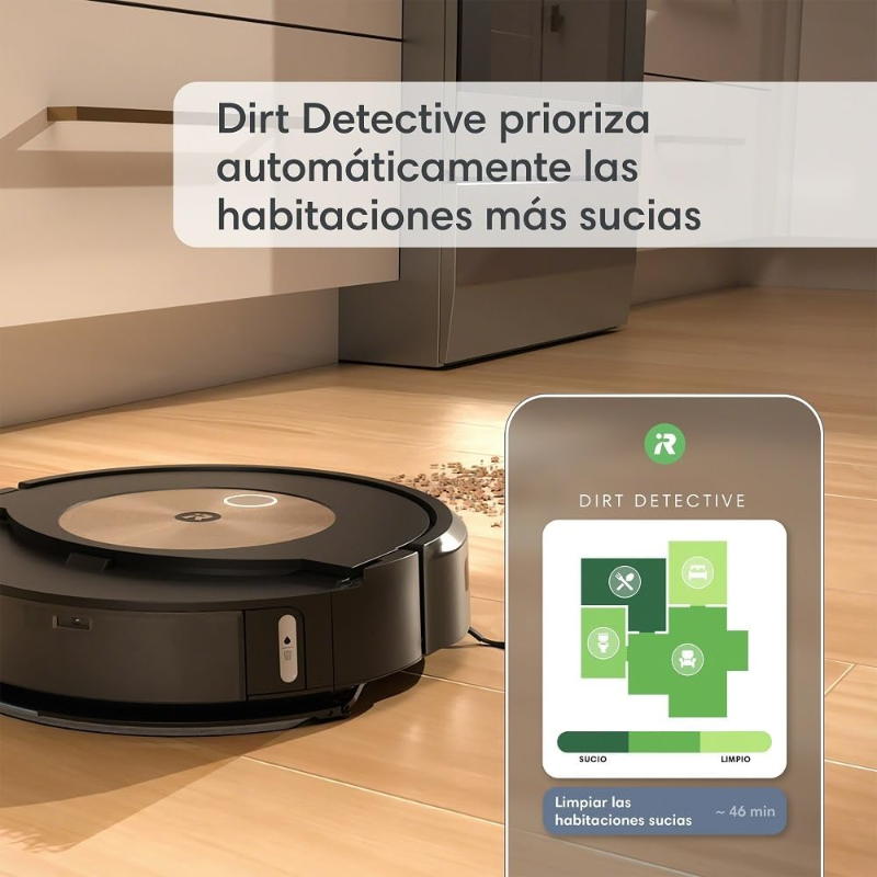 El Robot Aspirador iRobot Roomba j9+ cuenta con un sistema de navegación que utiliza tecnología avanzada para mapear espacios. Posee un mecanismo de succión y un rodillo dual diseñado para atrapar suciedad y pelos de mascotas. Incorpora un contenedor de residuos con vaciado automático. Este modelo es compatible con la aplicación móvil iRobot Home, permitiendo programar limpiezas y recibir informes de actividad. Dispone de conectividad Wi-Fi y es compatible con asistentes de voz populares. Su batería ofrece un tiempo de funcionamiento que varía según el tipo de superficie y la configuración utilizada. El sistema de filtración está diseñado para capturar partículas de polvo y alérgenos. La base de carga permite el almacenamiento del dispositivo cuando no está en uso.
